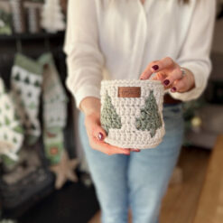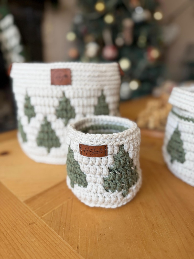 CROCHET PATTERN + VIDEO – Twinkling Trees Mosaic Crochet Baskets — 3 Nesting Sizes storage, gift, plantholder, Charts Included